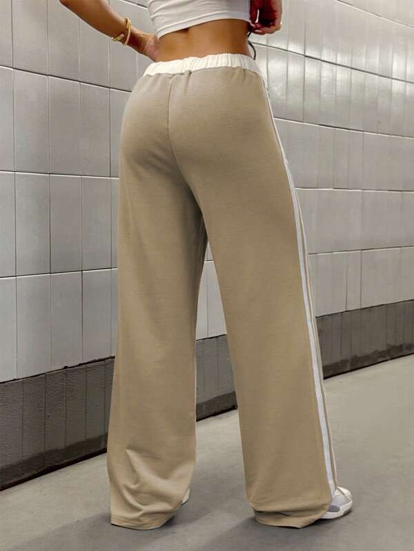 กางเกงขายาวพิมพ์ลายตัวเลข เอวยางยืด สไตล์สปอร์ตสตรีทเรโทร