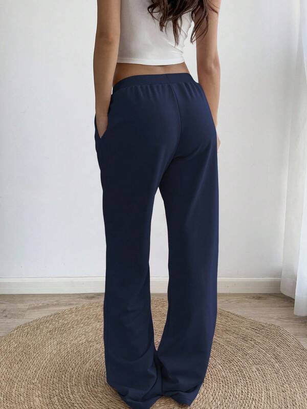 กางเกงวอร์มขากระบอกหลวม ปักลาย 87 ตัดสี แต่งริบรูด เชือกผูก กระเป๋าเฉียง สไตล์สปอร์ตเรโทรมินิมอล